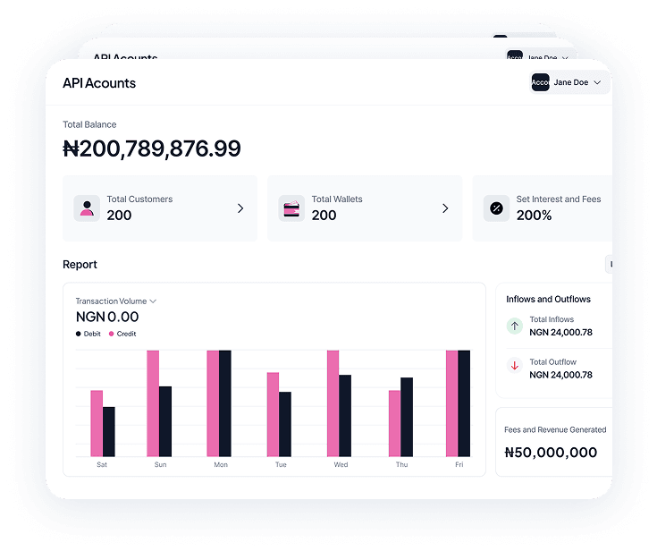 Leverage our API to create and manage expense, savings, and settlement wallets for your users. These APIs also allow you to process payments on your platform.